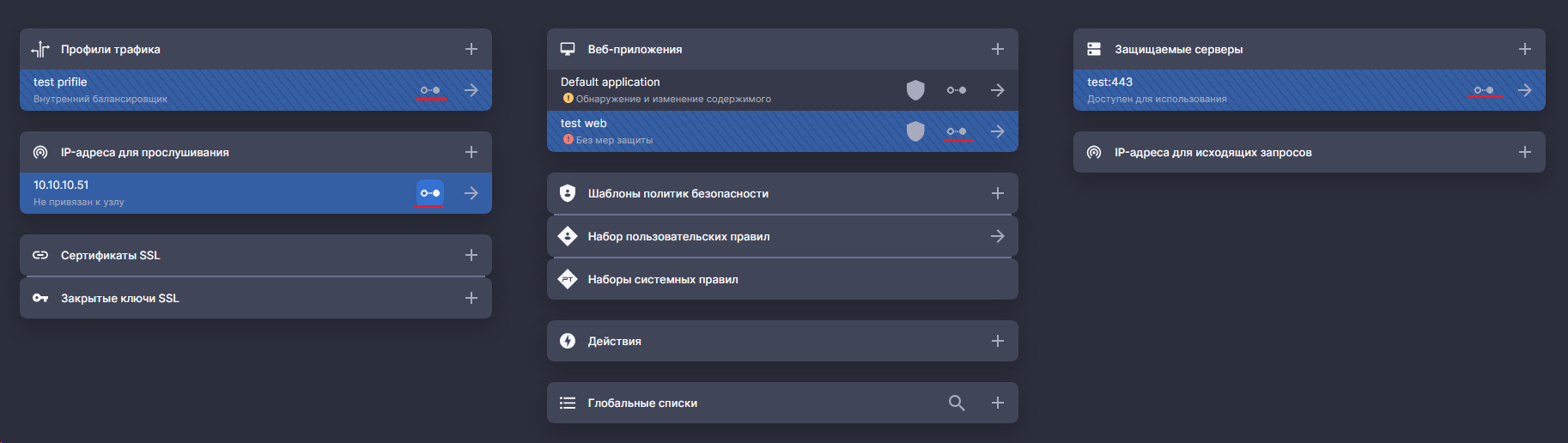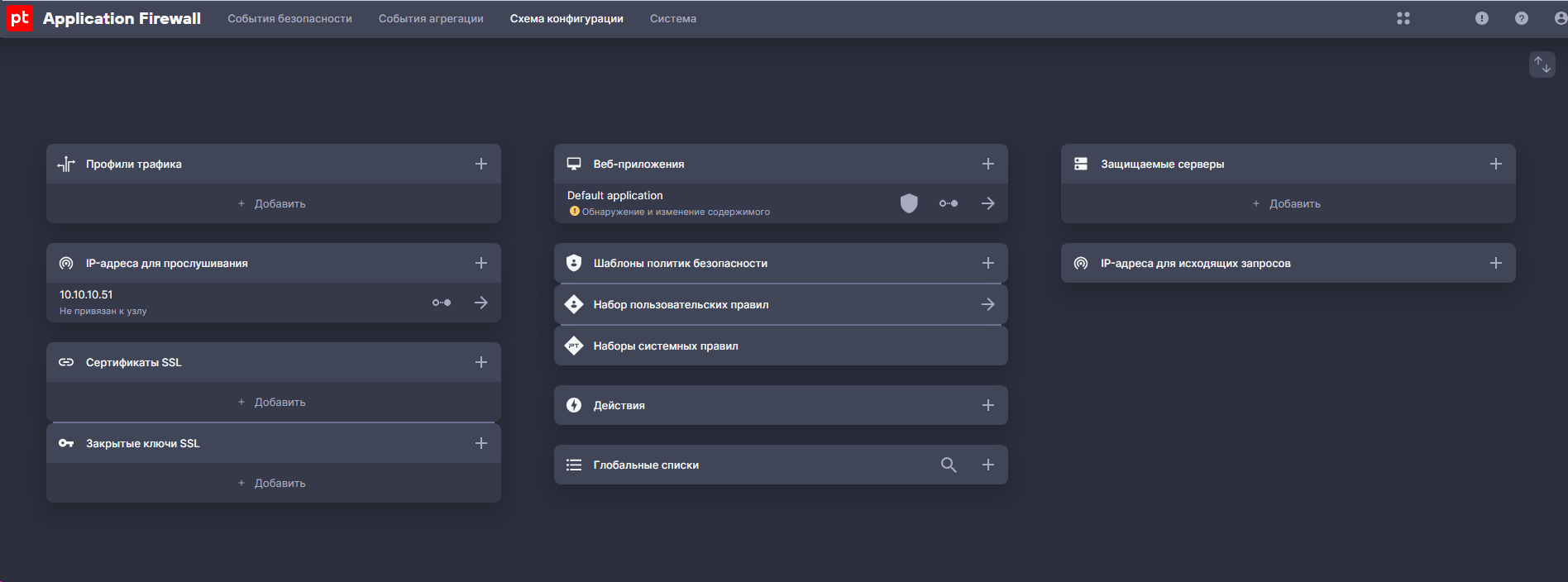 - Добавление защищаемого сервера – указываете ip адрес сервера и порт, на этот ресурс будут отправляться запросы после проверки WAF.
