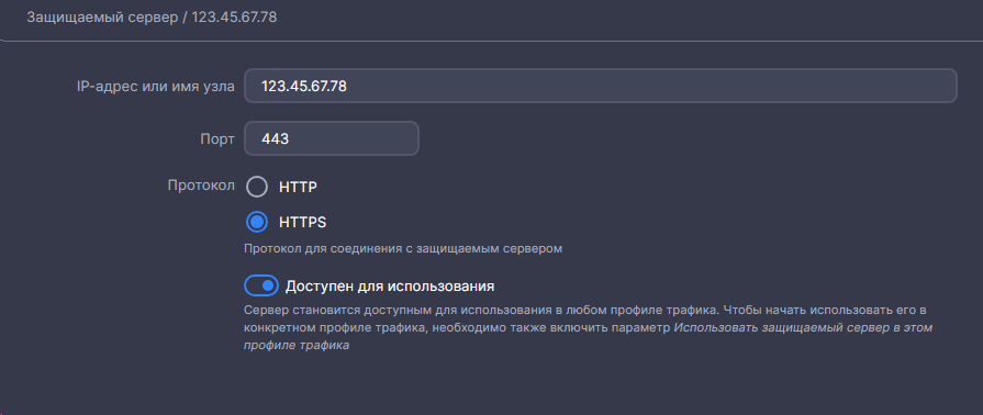 - В поле Защищаемый сервер выберите из выпадающего списка ранее созданный сервер