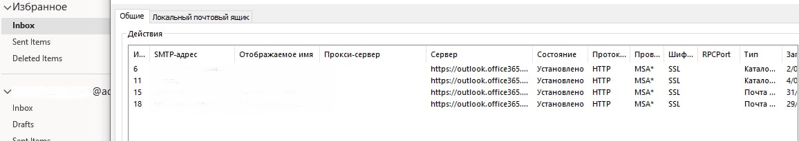 После настройки, можно убедиться в этом, зажав Ctrl > ПКМ на значок Outlook > выберите "Состояние подключения". Вместо Вашего сервера, указанного в автообнаружение, будут сервера Microsoft.