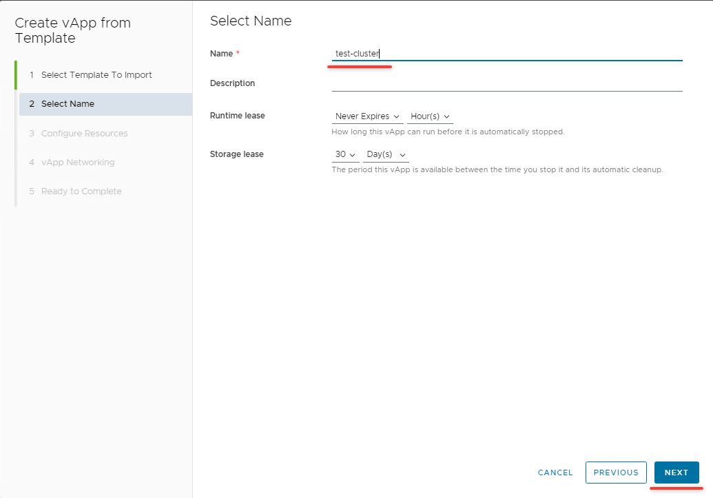Далее следуем мастеру добавления vApp. Выбираем шаблон k8s из каталога и нажимаем "next":