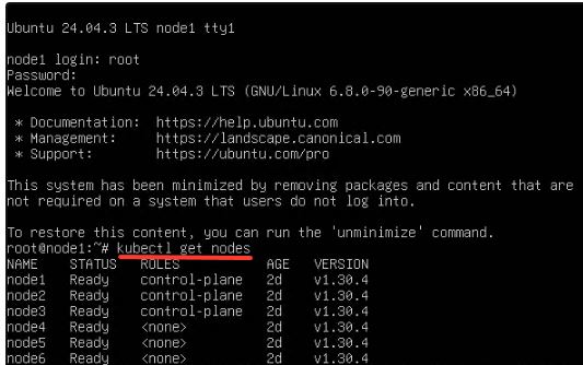 Когда все ВМ будут запущены, для проверки работоспособности кластера, заходим на любую МАСТЕР ноду и выполняем команду
